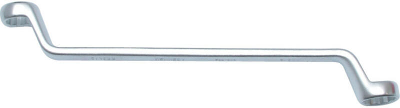 Selyemfény polírozású, króm-vanádium acélból készült kulcs, polírozott és 15°-ban hajlított fejekkel. DIN 3110 szabvány szerint készült. Méret: 11 x 13 mm Teljes hossz: 172 mm Súly: 63 g