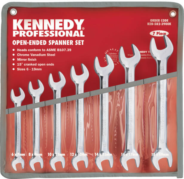 Króm-vanádium acélból készült kulcsok, tükörfény polírozással. A tükörfény polírozás megakadályozza az olaj és piszok kulcshoz való ragadását, könnyű tisztítást biztosít és véd a rozsdásodás ellen. Nagy nyomatékkal meghúzható extra vastag fejek. ASME B107.39 szerint gyártva. 7 darabos készlet összetétele: 6 x 7, 8 x 9, 10 x 11, 12 x 13, 14 x 15,16 x 17 és 18 x