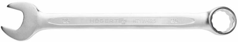 HÖGERT Csillag-villáskulcs, CrV acél, 25 mm, DIN3113 (HT1W425) Termék információ: Anyaga : CrV acél Méret: 25 mm A csillag-villáskulcs hex, xzn és torx típusú menetes rögzítőelem ki- és becsavarozásához alkalmas Kiváló minőségű, korrózióálló ötvözött CrV acélból készült Tartós Matt felület A DIN 3113 szabvány szerint gyártott 15 fokos szögben beállított kul