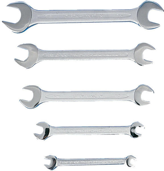A készlet tartalma: 1/4" x 5/16", 3/8" x 7/16", 1/2" x 9/16", 5/8" x 11/16" és 3/4" x 7/8"-os kulcsok.