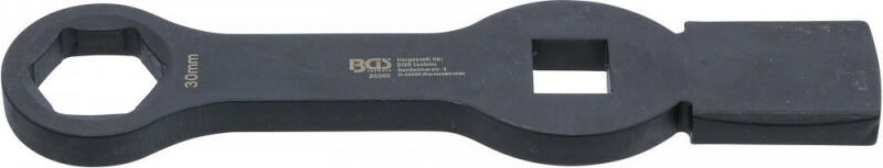 Alapanyaga kovácsolt és edzett acél, a meghajtófelület gépi megmunkálással készült, hogy jó felületi összekapcsolódást biztosítson a kötőelemmel. A lapos oldalfelület kalapáccsal üthető a nehezen oldható kötőelemek meglazítása vagy megszorítása céljából. Megfelel a DIN 7444 szabvány előírásainak. Jellemzők - Méret: 46 mm- Teljes hossz: 240 mm- Súly: 1 kg