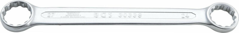 hidegen kovácsolt egyenes forma Műszaki adatok: Meghajtott profil Tizrnkét szögletű meghajtó elem Anyag Króm-vanádium acél Bruttó súly 220 g Felületjavítás Krómozott, matt 1. kulcsméret 24 mm 2. kulcsnyméret 27 mm