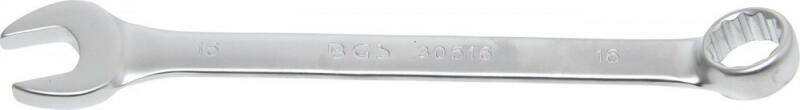 Angol nyelvű leírás (a magyar fordítást lásd lejjebb):cold forged size spanner lengthsatin chrome finishring end 15° angledprofile ring end: 12-pointMagyar fordítás (fordító automata segítségével):hideg kovácsolt méretű csavarkulcs hosszaszatén króm kivitelgyűrű vége 15 ° szögbenprofilgyűrű vége: 12 pontA BGS Technic családi tulajdonban lévő vállalat, mely az 1970-es