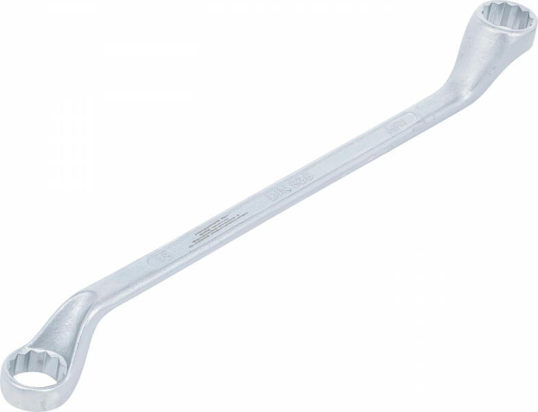 Selyemfény polírozású, króm-vanádium acélból készült kulcs, polírozott és 15°-ban hajlított fejekkel. DIN 3110 szabvány szerint készült. Méret: 30 x 36 mm Teljes hossz: 319 mm Súly: 692 g