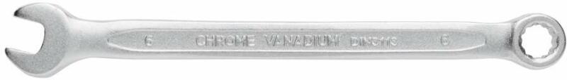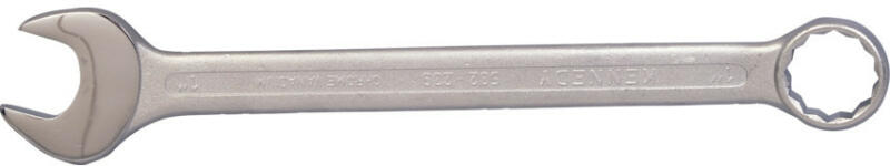 Selyemfény polírozású, króm-vanádium acélból készült kulcs, polírozott és 15°-ban hajlított fejekkel. Méret: 14 mm Teljes hossz: 180 mm Súly: 82 g