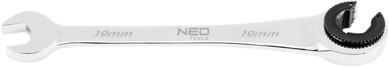 A NEO TOOLS 19 mm-es 09-266 egy 19 mm-es méretű, nyitott végű, racsnival osztott kulcs. Jellemzője a 72 fogú racsnival ellátott rés. A kulcs rendkívül tartós és krómozott felülettel rendelkezik. CrV acélból készült, hidraulikus és mechanikai munkáknál, pl. üzemanyag- és fékrendszerek kerékanyáinak felszerelésénél és eltávolításánál használható. A NEO TOOLS már