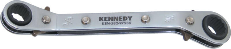 Króm-vanádium acélból gyártott kulcs, 12-szögű fejekkel. Szűk helyekre tervezve. Mindkét oldalon beépített racsnival a nagyobb termelékenység érdekében. A racsnik forgásiránya a kulcs oldalán található irányváltókkal változtatható. Méret: 3/8" x 7/16" Súly: 80 g