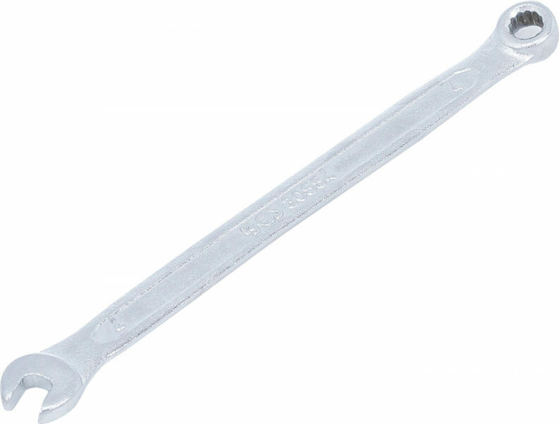 Selyemfény polírozású, króm-vanádium acélból készült kulcs, polírozott és 15°-ban hajlított fejekkel. Méret: 7 mm Teljes hossz: 110 mm Súly: 18 g
