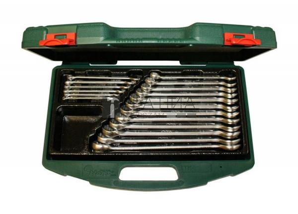 Termék leírás: 17 db racsnis csillag-villáskulcs (tükörfényes) A csillag racsnis kulcs 72 fogas, 5°-os munkatartománnyal. Villás vége 15°-kal döntött. Piros műanyag tárolótáska Hosszúság: 136 - 425 mm Anyag: Króm-vanádium acél. A szerszámacélok legfontosabb tulajdonságai a keménység és a kopásállóság. A vanádium tovább növeli a keménységet és a kifáradással