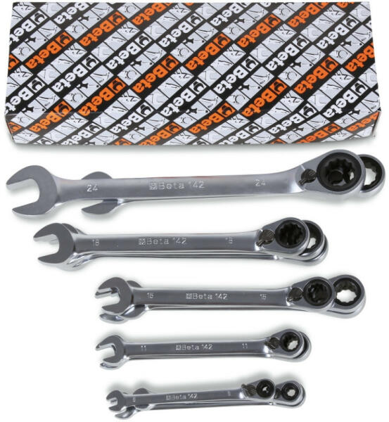Beta - Italy Chrome-Vanádium acél anyagból gyártott, hajlított 72 fogas racsnis csillag mechanizmussal 15 részes készlet kiszerelés papír dobozban szállítva Tulajdonságok: - Anyaga: Chrome-Vanádium acél - 72 fogas racsnis mechanizmus - 15°-ban Hajlított csillag rész - Megfelelően könnyen működtethető irányváltó - Mattított chróm felületképzés - Jól látható beütöt