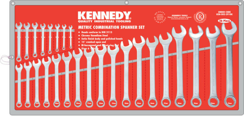 Selyemfény polírozású, króm-vanádium acélból (kivétel*, amely kovácsolt szénacél) készült kulcsok, polírozott és 15°-ban hajlított fejekkel. Szabványok: 5.5 mm - 25 mm, 1/4 - 1 AF - DIN 3113. 26 mm - 50 mm, 11/16 - 2AF - ASME B107.6. 1/8 - 1/2 Whitworth - DIN 3113 és BS192:1982. 9/16 - 7/8 Whitworth - ASME B107.6 és BS192:1982. Selyemfény polírozású, króm-vanádium acélb