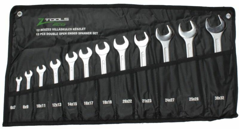 Z-Tools villáskulcs készlet jellemzői Méret: 6-32mm villáskulcs: 6x7; 8x9; 10x11; 12x13; 14x15; 16x17; 18x19; 20x22; 24x27; 30x32mm DIN 3110 szabványnak megfelelő Chrome-Vanadium