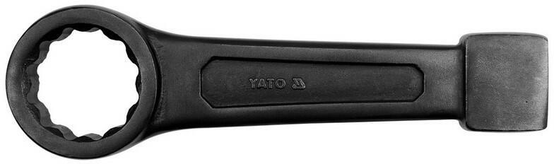 A YATO professzionális üthető csillagkulcs erős, hidegen kovácsolt króm-vanádium acélból készül, fekete foszfát bevonatú felületképzéssel a megfelelő strapabíróság érdekében. A 12 lapú metrikus fejrész AS-rendszerrel van ellátva (ez 25%-kal növeli a maximális nyomatékot, az anyák éleinek teljes védelme mellett), ami egy üthető fejben végződik. Ez a lapos felület