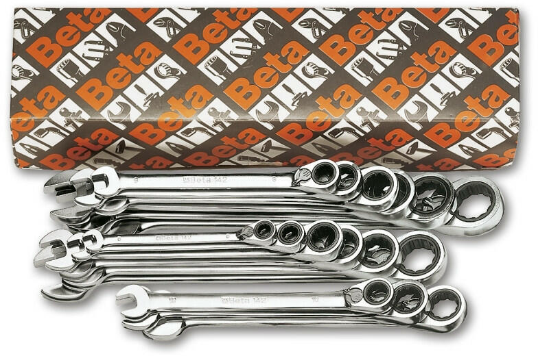Beta - Italy Chrome-Vanádium acél anyagból gyártott, hajlított 72 fogas racsnis csillag mechanizmussal. 19 részes készlet kiszerelés papír dobozban szállítva. . Tulajdonságok: - Anyaga: Chrome-Vanádium acél - 72 fogas racsnis mechanizmus - 15°-ban Hajlított csillag rész - Megfelelően könnyen működtethető irányváltó - Mattított chróm felületképzés - Jól látható beü