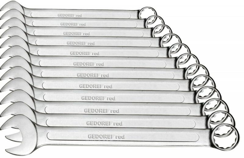 Műszaki paraméterek: Gyártói cikkszám: R09105112 Kulcsnyílás: 6 mm-től 22 mm-ig Anyaga: Chrome-Vanadium Gyártói kód: 3300992 Szállítási méret: 35x14x5 cm Szállítási súly: 1,10 kg GEDORERed R09105112 Villás-csillagkulcs készlet, 12 részes, 6-22mm Csavarok és anyák ellenőrzött oldására és meghúzására alkalmas A csillagoldalon 15°-ban függőlegesen behajlított fej b