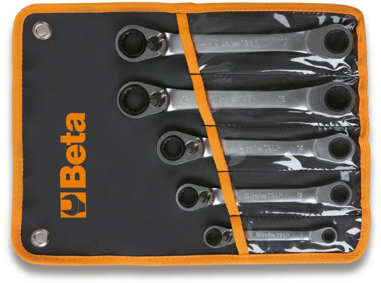 5 részes racsnis 15°-ban hajlított csillagkulcs szerszám készlet műanyag dobozban 5 részes racsnis 15°-ban hajlított csillagkulcs szerszám készlet műanyag dobozban 195P 8x10-12x13-14x15-16x18-17x19 mm