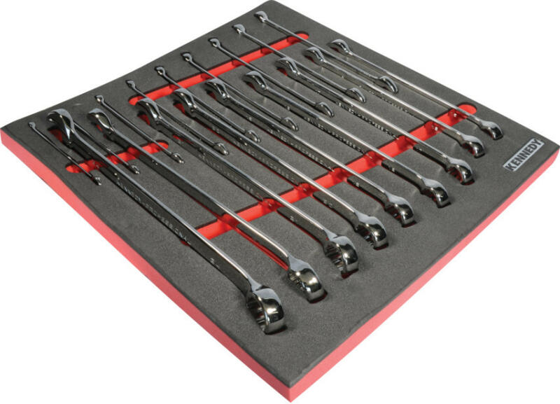 A készlet tartalma:Metrikus racsnis csillag-villáskulcsok: 6, 7, 8, 9, 10, 11, 12, 13, 14, 15, 16, 17, 18, 19, 20, 21, 22, 24 mm-es Classic szerszámos szekrényekhez. 2/3-os: A betét mérete: 384 x 406 x 25 mm