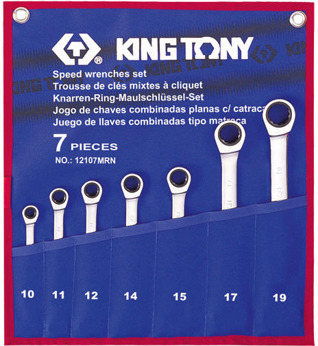 Tartalmazza a King Tony 3731 cikkszámú racsnis csillag-villás kulcsokat az alábbi méretekben:10 11 12 14 15 17 19 mm