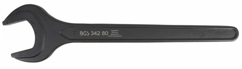 BGS Technic - Germany Tulajdonságok: - Ipari villáskulcs - különösen nehéz szerelésekhez - Hosszú szárral a mélyen fekvő csavarkötésekhez és nagy nyomatékokhoz - biztonságos fogás a profilozott szárnak köszönhetően - melegen kovácsolt - Kulcsméret: 80 mm - Hossz: 665 mm - Fejvastagság: 23 mm - Pofa állása: 15 ° - DIN: 894 - Felületjavítás: Foszfátozott - Falikárpith