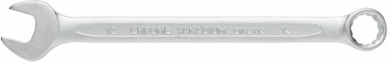 Csillag-villáskulcs. Recézett, dombornyomásos markolat a csúszásmentes fogásért. Egyenes-szárú, mindkét vége 15°-kal hajlított (villás vége horizontálisan, csillag vége vertikálisan). Teljes felülete fényesre polírozott. Méret: 17mm A termék megfelel a DIN 3113A előírásainak. An ISO 9001:2000 Company.