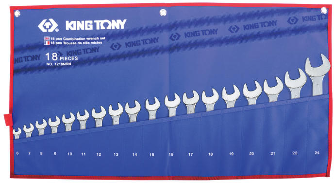 King Tony csillag-villás kulcs készlet adatai Méretek: 6 7 8 9 10 11 12 13 14 15 16 17 18 19 20 21 22 24mm Vászon tartóban King Tony csillag- villáskulcs jellemzői Európai vékony típus 15 °-os szögű villás vég 15 °-ban hajlított csillag fej Króm-vanádium ötvözött acélból Krómozott felület