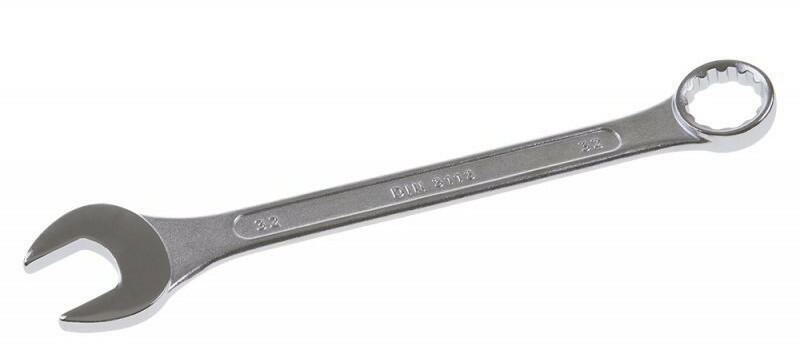 15°-ban hajlított csillag-villáskulcs. A 15°-ban hajlított csillagfej és a 15°-ban döntött villásfej megkönnyíti a kulcs használatát és a nehezen hozzáférhető helyeken történő csavarozást. A termék jellemzői króm-vanádium ötvözött acél krómozott és szatén felület 15°-ban döntött villásfej 15°-ban hajlított 12-szögű csillagfej Műszaki adatok Méret: 32 mm