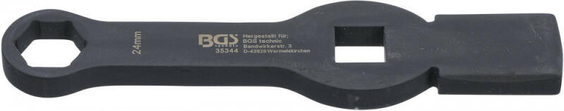 Jellemzők: a haszongépjárművek féknyeregcsavarjanak működtetéséhez csavarok meghúzására a gyártó által előírt nyomatékkulccsal Műszaki adatok: Anyag: Szerszámacél (C45) Felületjavítás: Foszfátozott Hossz: 214 mm Kulcsméret: 24 mm Meghajtott profil: Hatszögletű elem Meghajtó profil: Belső négyszögletű kulcsnyílású elem Meghajtó profil méret: 3/4" Bruttó súly: