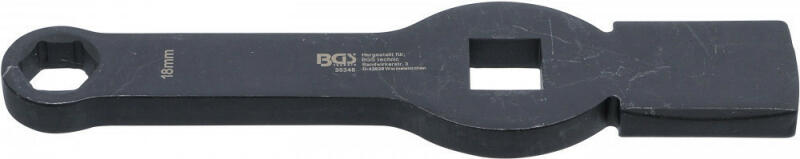 Jellemzők: a haszongépjárművek féknyeregcsavarjanak működtetéséhez csavarok meghúzására a gyártó által előírt nyomatékkulccsal Műszaki adatok: Anyag: Szerszámacél (C45) Felületjavítás: Foszfátozott Hossz: 214 mm Kulcsméret: 18 mm Meghajtott profil: Hatszögletű elem Meghajtó profil: Belső négyszögletű kulcsnyílású elem Meghajtó profil méret: 3/4" Bruttó súly: