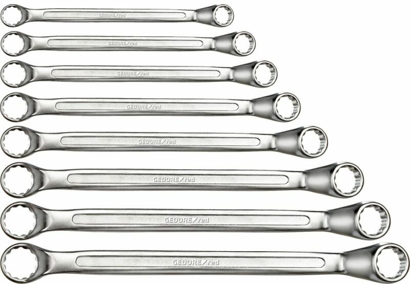 Műszaki paraméterek: Gyártói cikkszám: R01105008 Méretek: 6-tól 22 mm-ig Anyaga: Chrome-Vanadium Gyártói kód: 3300926 Szállítási méret: 35x22x5,5 cm Szállítási súly: 1,40 kg GEDORERed R01105008 Csillagkulcs készlet, 8 részes Csavarok és anyák ellenőrzött oldására és meghúzására A kulcs speciálisan szűk munkaterületeken történő felhasználás céljából 5°-ban