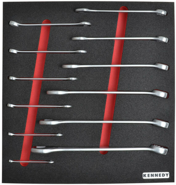 A készlet tartalma: AF-colos csillag-villáskulcsok: 1/4", 5/16", 3/8", 7/16", 1/2", 9/16", 5/8", 11/16", 3/4", 7/8", 15/16", 1" Ultimate és Industrial szerszámos szekrényekhez, felső ládákhoz. 2/3-os: A betét mérete: 380 x 396 x 20 mm