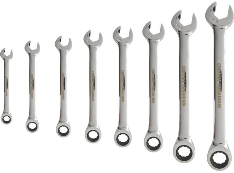 Króm-vanádium acélból, innovatív nyitott végű racsnis kialakítással készültek. A 72 fogas racsnis rendszerrel csak 5°-os mozgatásra van szükség a racsni és a csavarkulcs használatához. Szűk helyeken való használatra ideális. A krómozott tükörbevonat megakadályozza, hogy olaj vagy szennyeződés tapadjon a szerszámhoz, így megkönnyíti a tisztítást és megelőzi a roz