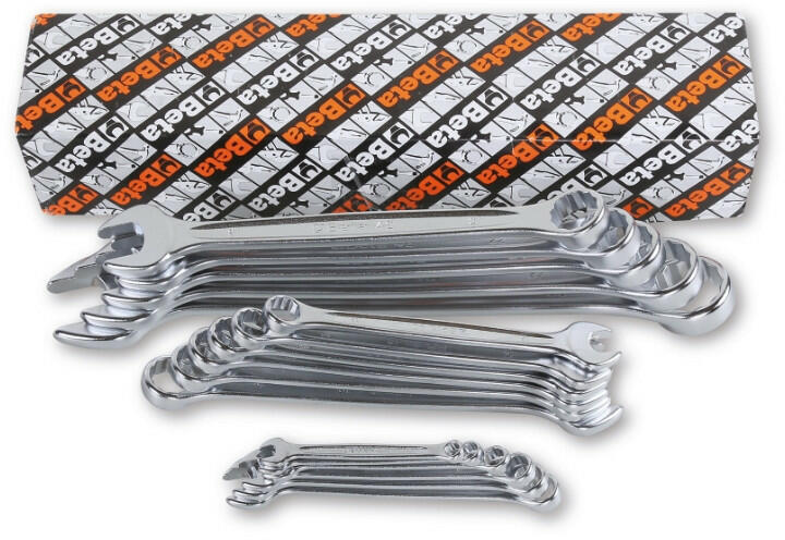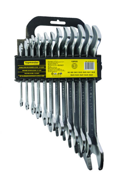 15°-ban hajlított csillag-villáskulcs. A 15°-ban hajlított csillagkulcsfej és a 15°-ban döntött villáskulcsfej megkönnyíti a kulccsal való manőverezést és a nehezen hozzáférhető helyeken történő csavarozást. Termék jellemzői króm-vanádium ötvözött acél krómozott és szatén felület 15°-ban döntött villáskulcsfej 15°-ban hajlított 12-szögű csillagkulcsfej M