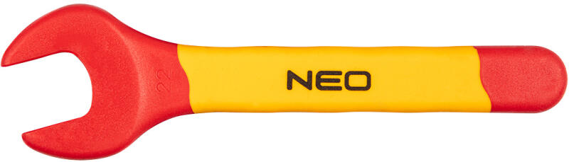 Gyártói garancia: 25 év. NEO villás kulcs (ref. sz. 01-126), mérete 22 mm, hatszögletű csavarok behajtását és kicsavarozását szolgálja. Alkalmassági tesztje 1000 V feszültségen került elvégzésre. Egyágú csavarkulcs, leszűkített egyszerű markolattal. A kulcs a szerszám hosszú élettartamát biztosító króm-vanádium ötvözetből készül... Részletes leírás lejjebb.