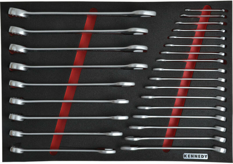 Készlet összetétele: 6, 7, 8, 9, 10, 11, 12, 13, 14, 15, 16, 17, 18, 19, 20, 21, 22, 23, 24, 25, 26, 27, 28, 30, 32 mm-es kulcsok.
