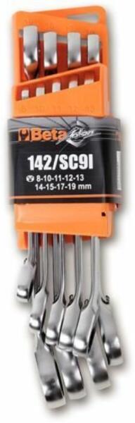 BETA 142/SC9I 9 DARABOS CSILLAG-VILLÁSKULCS KÉSZLET, ÁTVÁLTÓS RACSNIVAL, KOMPAKT TARTÓVAL Csillag-villáskulcs készlet, 9 darabos, átváltós racsnival, kompakt tartóval. A készletben megtalálható méretek: 8-10-11-12-13-14-1 5-17-19 mmTömeg : 1,5 kg/db