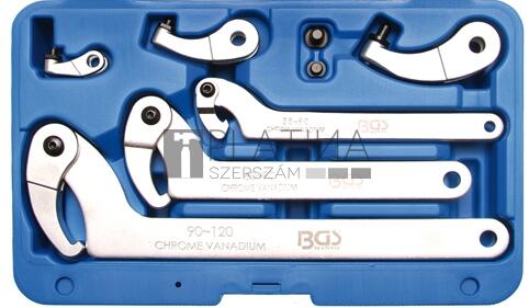 Angol nyelvű leírás (a magyar fordítást lásd lejjebb):suitable for grooved nuts DIN 1804 and bearing nuts DIN 981for diameters: 35-60, 60-90, 90-120 mmhook and pin lug are interchangeableMagyar fordítás (fordító automata segítségével):alkalmas DIN 1804 hornyolt anyákhoz és DIN 981 csapágyanyákhozaz átmérőhöz: 35-60, 60-90, 90-120 mmhorog és csapszeg cserélhetőekA BGS Techni