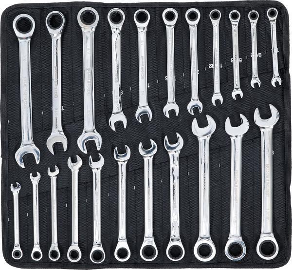 alkalmas mindennapi barkácsoláshozuniverzálisan alkalmazható működtető és ellentartó csavaros csatlakozásokhozpraktikus készlet metrikus és hüvelykes kulcsméretekkelpraktikus, felgöngyölíthető táskában, felcímkézett külön rekeszekkel minden egyes mérethezspeciális fogazás racsnis funkciója megkönnyíti a nagy teherbírású csavarokkal való munkát és optimális erő