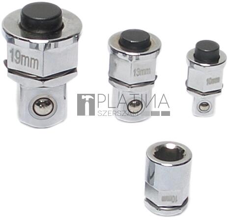 Angol nyelvű leírás (a magyar fordítást lásd lejjebb):includes the following tools:1 adaptor with external square 6.3 mm (1/4") for ring wrench 10 mm1 adaptor with external square 10 mm (3/8") for ring wrench 13 mm1 adaptor with external square 12.5 mm (1/2") for ring wrench 19 mmwith quick releasecan substitute 3 ratchet handles if used with ratchet wrenches1 bit adaptor with internal hexag