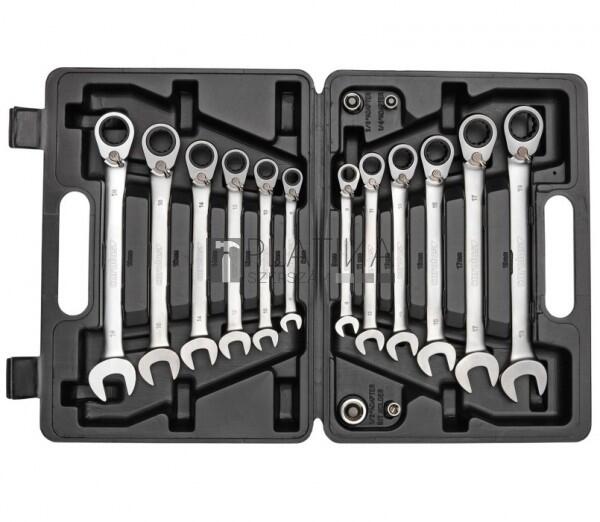Műanyag bőröndbenTartalma:12x villás-racsnis kulcs, átállítható, nyílásméret 8 10 12 13 15 17 18 19 mmApró fogú, 72 fog15°-ban könyökös fejIdeális szűk munkaterületek hozzáféréséhez1/2" + 3/8" + 1/4" racsni funkció adapteren keresztülNégyszög-adapter:1/4" x 10 mm3/8" x 13 mm1/2" x 19 mmBit-adapter:1/4" x 10 mmCarolus, powerd by Gedore