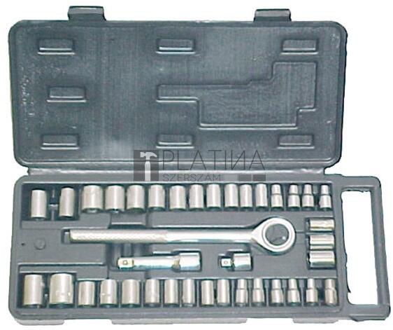 14db dugófej 1/4": 4-13mm14db dugófej 1/4":5/32-9/16"3db dugófej 1/4":1/4-5/16-3/8"2db dugófej 3/8":14-15mm2db dugófej 3/8":7/6-1/2"1db racsnis hajtókar 3/8"1db hosszabbítószár 75mm, 3/8"1db adapter 3/8"-1/4"