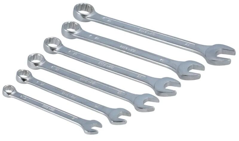 Metrikus Bi-Hex kombinált villáskulcs készlet 8 mm és 17 mm között. A szerszámok szatén testfelülettel és polírozott pofákkal rendelkeznek a praktikus, klasszikus megjelenés érdekében. A szilárdság és a tartósság érdekében króm-vanádiumból készült villáskulcsokat évekig tartó megbízható használatra tervezték. Méretek: 8, 10, 12, 13, 14, 17 mm. Bi-Hex profil 15°-