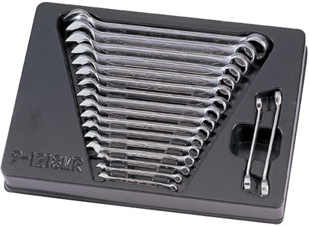 King Tony szerelőkulcs készlet jellemzői Tálcás kivitel (375x265mm) Tartalma: 1060 csillag-villás kulcskészlet 6, 7, 8, 10, 11, 12, 13, 14, 15, 16, 17, 18, 19, 21, 22, 24; 1930 fékcsőkulcsok: 8x10, 11x9 Része a 934-001MR szerszámkocsinak King Tony csillag- villáskulcs jellemzői Európai vékony típus 15 °-os szögű villás vég 15 °-ban hajlított csi