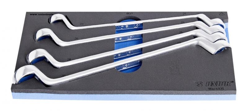 Vékony falú csillag-villáskulcs, alkalmas nagyon szűk helyeken végzendő munkákhoz is. 15°-ban hajlított fej Csillagoldalon vékony falú és pontosan csiszolt, lekerekített csavarokhoz és anyákhoz alkalmas Króm-vanádium acél Kovácsolt és matt krómozott DIN 3113 A ISO 3318