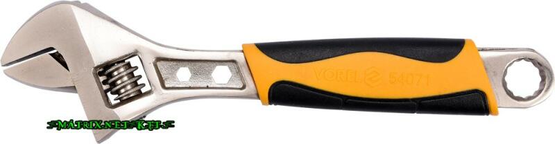 Állítható kulcs 200 mm. Szénacélból készült, süllyesztve kovácsolt krómozott felület. Gumírozott műanyag nyéllel Max. kulcsnyílás: 25 mm Hosszúság: 200 mm Anyag: szénacél Nyél: gumírozott Felületkezelés: krómozott Pofa kivitel: polírozott Gyártási technológia: süllyesztve kovácsolt Beosztás: igen