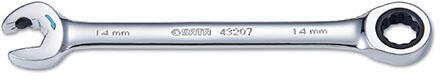 Villás csillagkulcs Süllyesztékben króm vanádium acélból kovácsolva, edzve és megeresztve a magas szilárdság és tartósság érdekében. Erősen terhelhető korrózióvédő krómozással. 12°-al elforgatott kettős hatlapú gyűrűs kulcs az egyszerű használathoz. Műszaki adatok: Anyag: Króm-vanádium acél · Anyagjellemző: Edzett · Csavarkulcs típus: Racsnis csavarkulcs · D