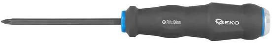 Kényelmes markolat, amely biztos fogást nyújt a speciális rovátkáknak köszönhetően. A markolaton található jelölés megkönnyíti a csavarhúzó végének azonosítását. Speciális, megerősített kialakítás lehetővé teszi a csavarhúzó kalapáccsal történő ütését. Típus: kereszthornyú csavarhúzó PH1 Alkalmazás: csavarhúzó kalapáccsal történő ütése Szín: feke