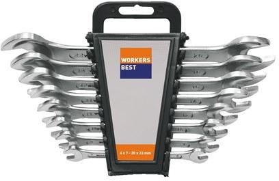 Szénacélból készült, egy darabból kovácsolt test. Nejlon tok, a falra akasztását segíti a csillag villás kulcs készletnek. Méretek: 8,10, 12,13, 14,17mm
