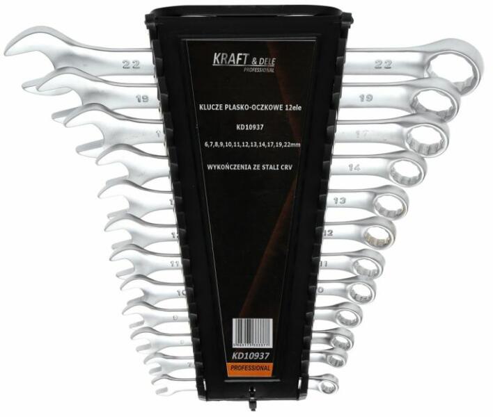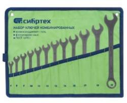 Sibrtech 15477 kombinált villáskulcs készlet CrV acélból, foszfáttal, GOST 16983, 12 db, 6-22 mm átmérőjű kötőelemek ki- és meghúzásához, 6 vagy 12 oldalú fejprofillal. A 12 élű gyűrű belső felülete lehetővé teszi a kulcs mindössze 30 fokos elforgatását, ami megkönnyíti a munkát szűk helyeken. A kulcsokat vízszerelési és szerelési munkákhoz használják, haszno