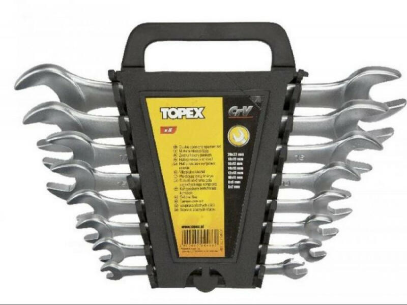 A TOPEX villáskulcs készlet kiválóan beválik szerelési, barkácsolási munkákban. A kulcsok nagy ellenállóképességű, a szerszámnak hosszú élettartamot biztosító króm-vanádium acélból készültek. Praktikus, a tárolást megkönnyítő műanyag csomagolásban vannak elrendezve. A TOPEX márka ezermestereknek készül. Villáskulcs klt. , 8 db?os, 6-22 mm, méretek: 6 x 7, 8 x 9