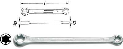 TORX® kettős csillagkulcs, laptáv: E10, laptáv: E12 Jellemzők: Kettős csillagkulcs külső TORX® csavarokhoz · Egyenes · Króm-vanádium-acél · Krómozott felület, polírozott fejek